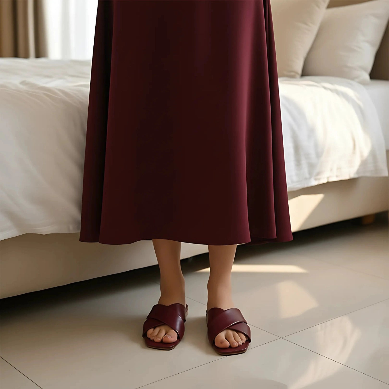 The square-toe shape sets the tone for contemporary fashion. Modern yet understated, this design detail elongates the foot’s appearance and enhances the structured elegance of the slippers. It’s a subtle nod to current trends while remaining classic enough for long-lasting wear.
