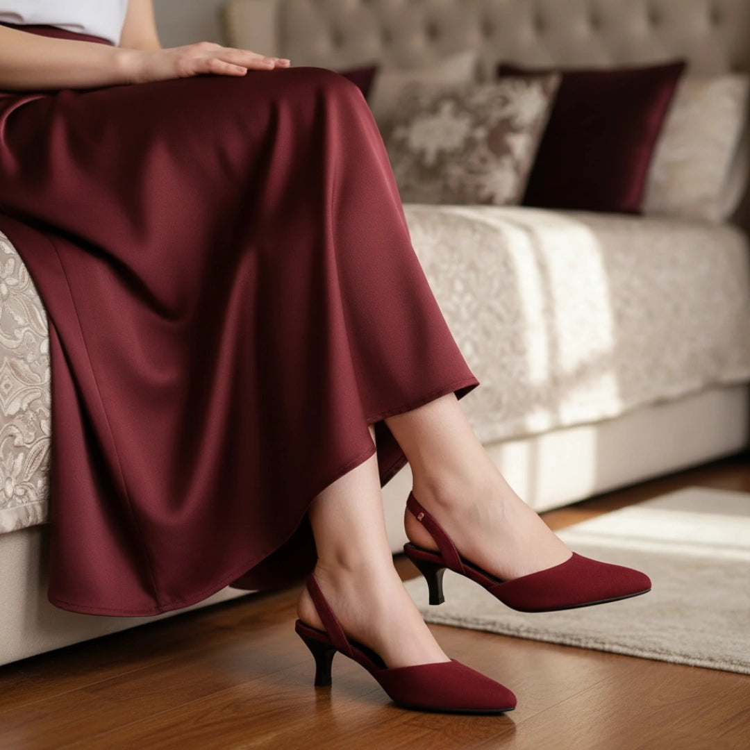 Sage Slingback will always make a bold fashion statement, even more so when they are subtle yet elegant. Presenting a classy pointed-toe, elegant kitten heels and a smooth suede finish, they will instantly elevate any look the moment you step into them. Available in 5 colors!