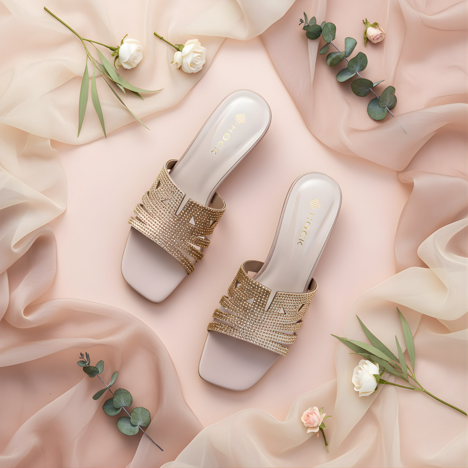 These sandals are a wardrobe essential for the woman who loves versatility with luxury. Pair them with traditional attire like sarees, lehengas, or anarkalis for festive events, or match them with elegant Western ensembles like pleated skirts or cocktail dresses for modern celebrations. Their neutral champagne hue complements almost any outfit, making them the perfect choice for day-to-night transition wear.