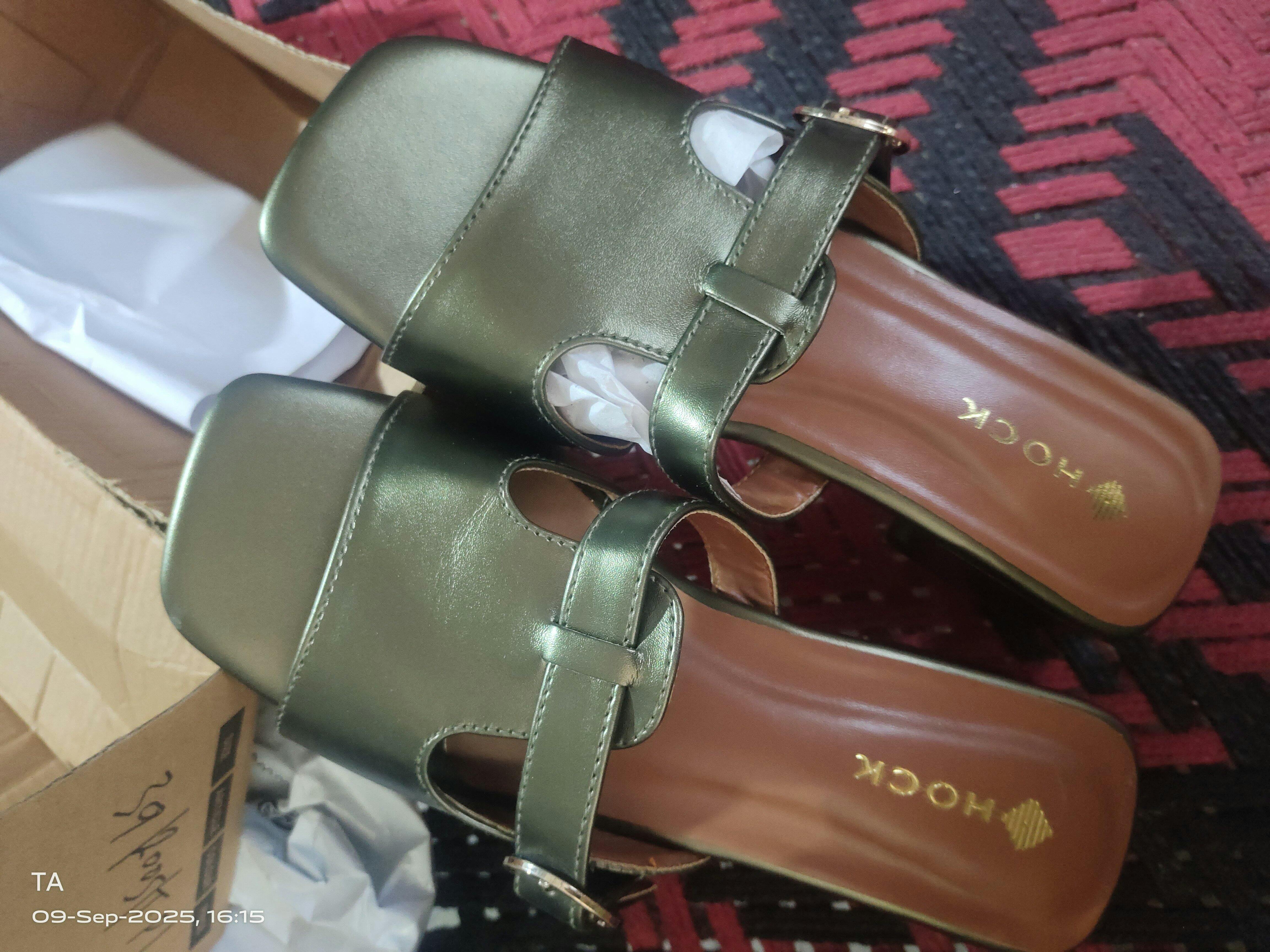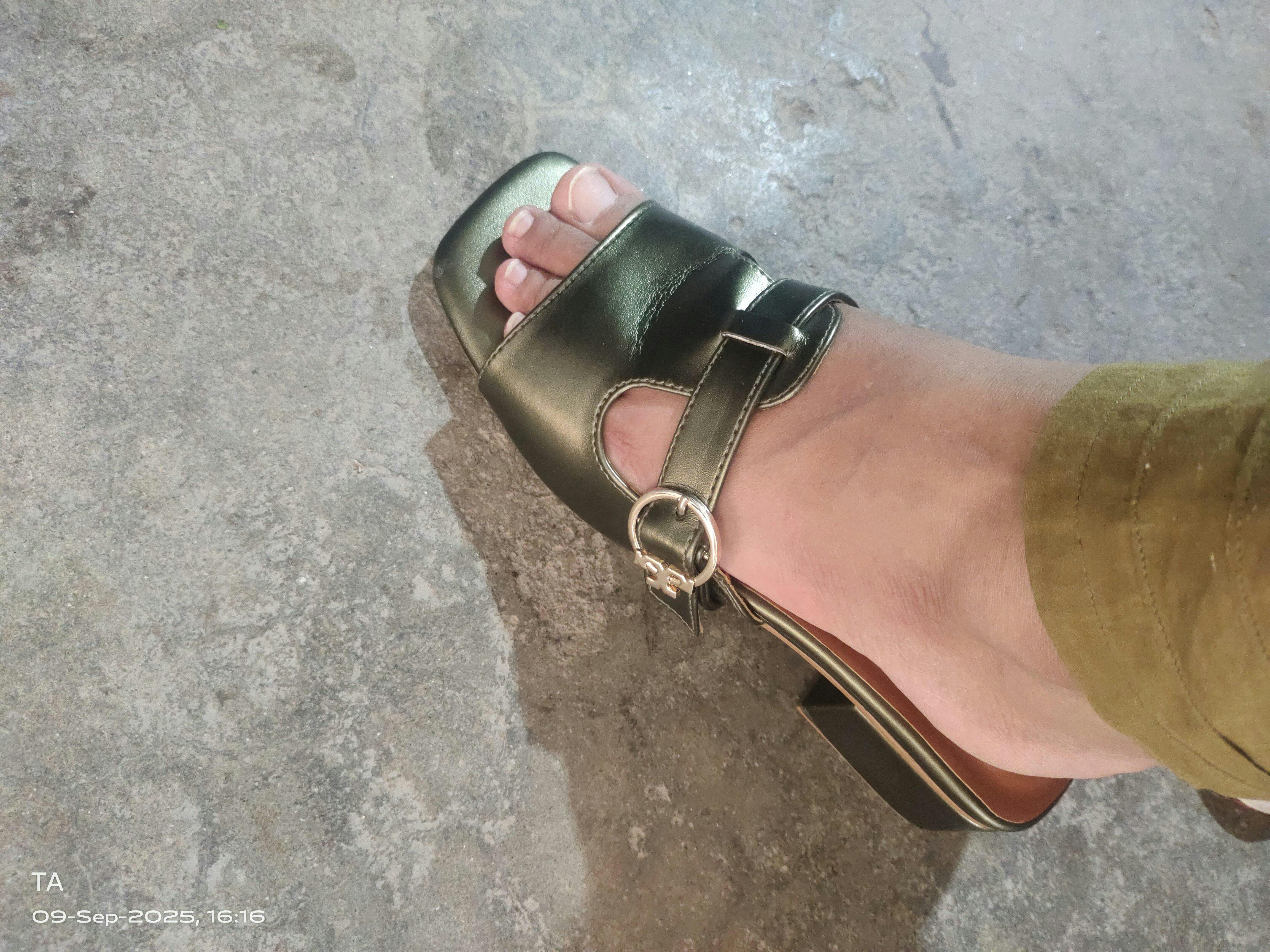 The modest design features belted straps with buckle against a luscious metallic finish, which gives the shoes an elevated look. Pair it with your favorite dress on your important occasion