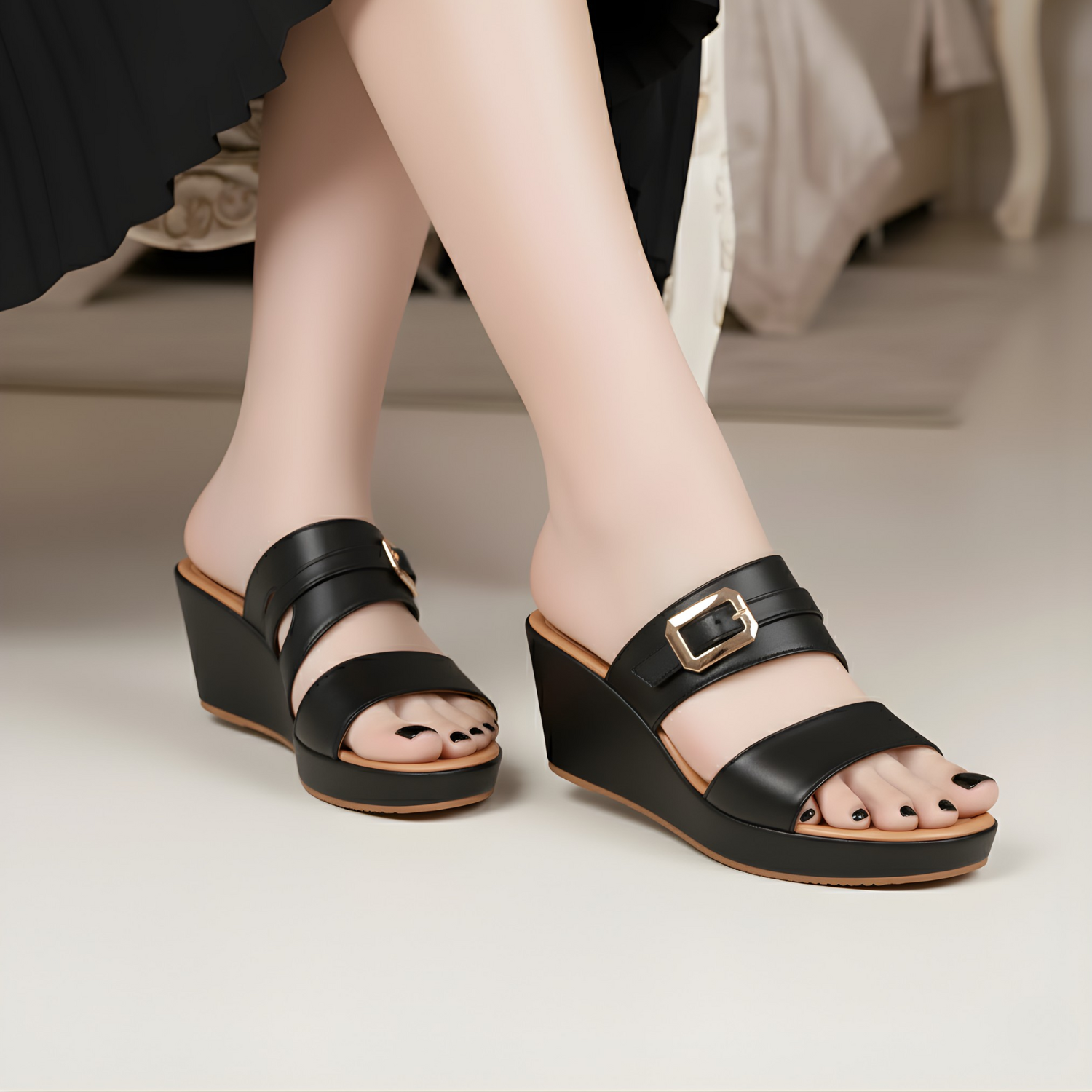 Elevate your everyday with Hockshoes’ Wedge Heel Slipper—where comfort meets artistry. Crafted with a graceful wedge that offers subtle height and balanced support, it redefines casual elegance. The sleek design pairs seamlessly with any outfit, while the cushioned footbed ensures effortless wear from day to night. A slipper that’s more than footwear—it’s a statement of poise and modern charm.
