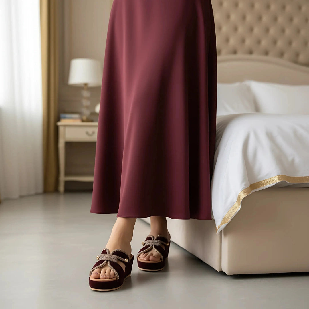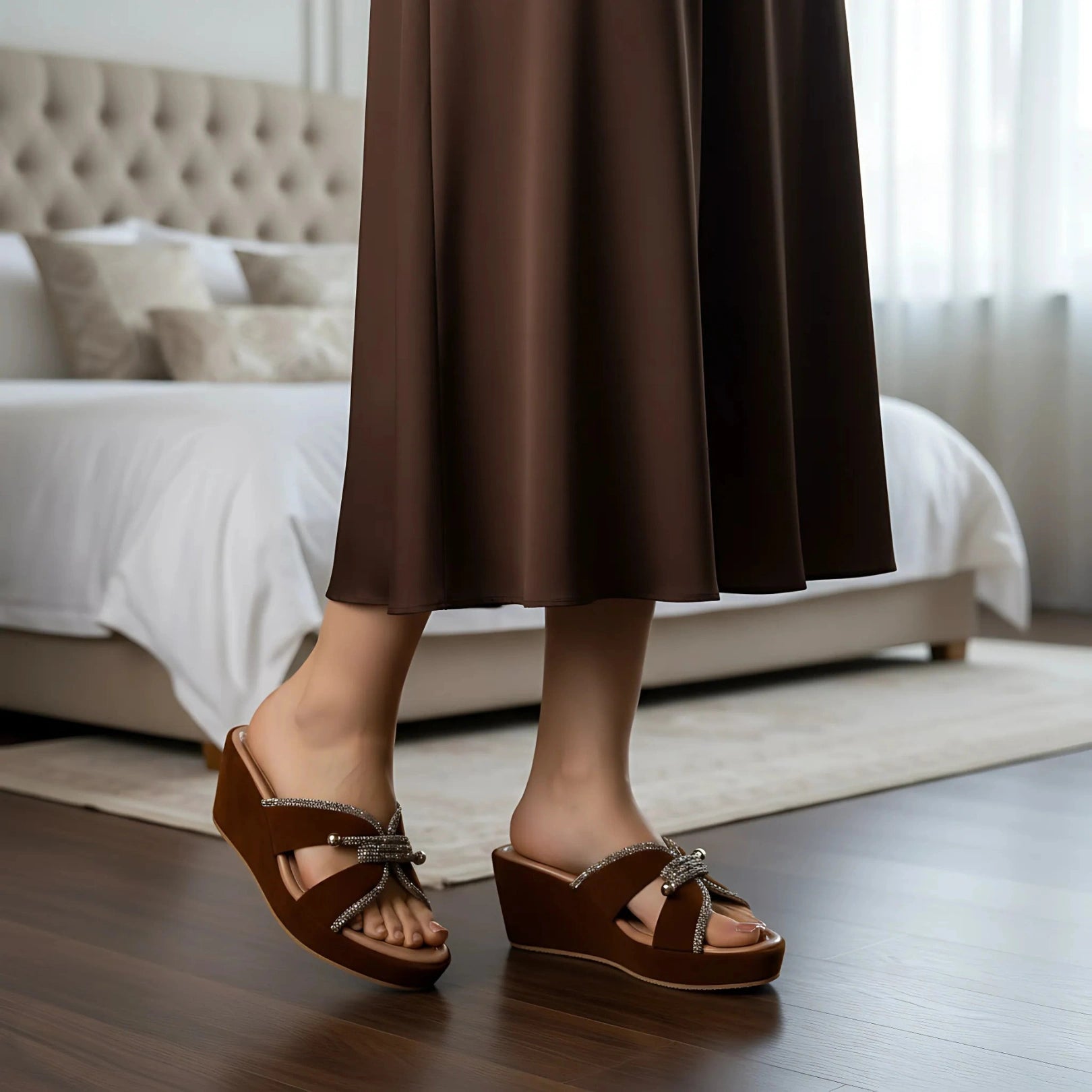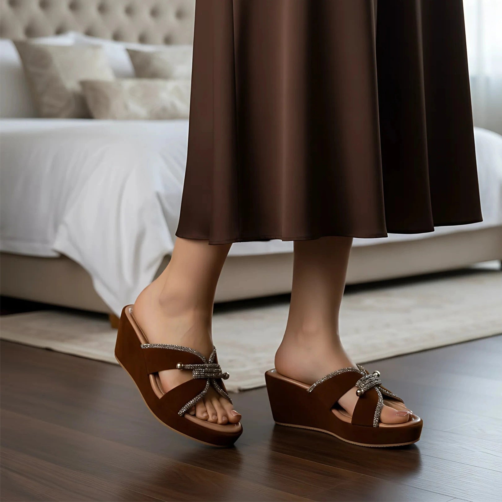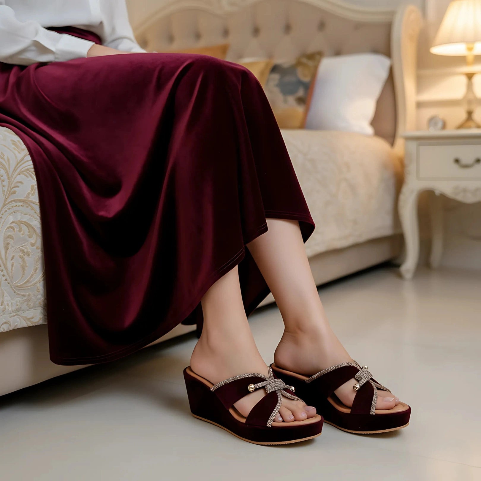 The wedge heel construction ensures the perfect balance of height and comfort. Unlike conventional heels, the wedge distributes weight evenly, offering stability while still giving the wearer an elegant lift. This makes them ideal for long evenings, festive occasions, or weddings where both beauty and comfort matter.